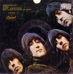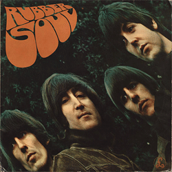 A edição italiana do disco Rubber Soul teve algumas modificações na capa (cor e forma das letras) e na contracapa, exclusiva, com o disco tendo o subtítulo de Beatles 7. |